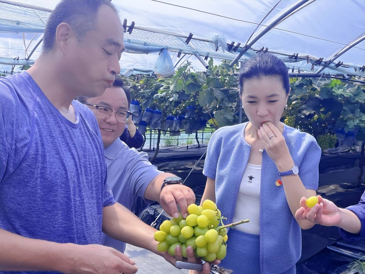 会后,由陆市村钱晓斌书记带队,参观陆市村当地的葡萄种植园和黄金小玉米保育基地,介绍了陆市村阳光玫瑰葡萄和黄金小玉米的引进、种植过程,实地参观种植基地以及在建中的分拣加工场所。